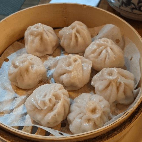 6 pieces. Steamed. Juicy dumplings