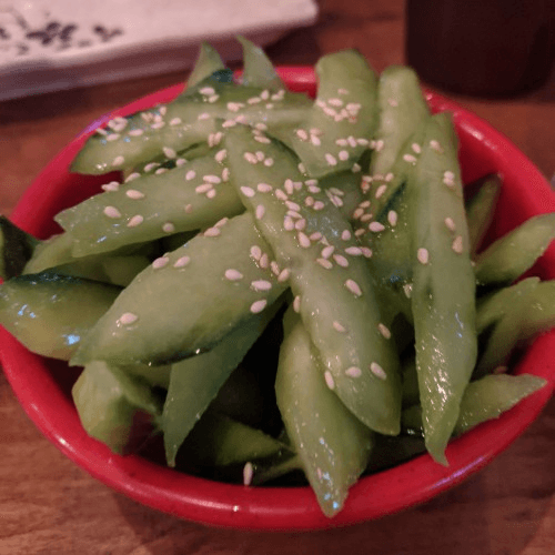 Broth-less cold noodle topped with braised chicken, spinach, beans sprouts, and scallion in spicy peanut sauce