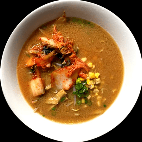 Miso based bone broth. Topped with bean sprouts, corns, menma, grounded pork, miso egg, and scallions