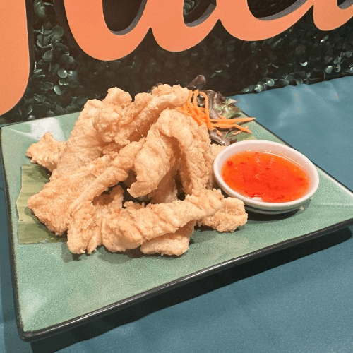 Lightly batter golden fried calamari serves with Thai sweet chill sauces