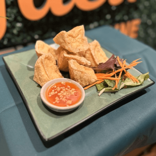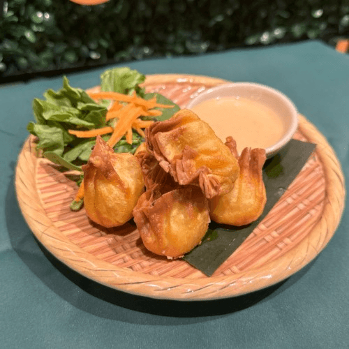 Fried imitation crab sticks with cream cheese and celery served with Thai spicy mayo