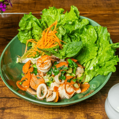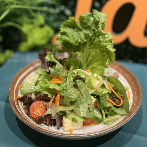 Seasonal mix green with cucumber, carrots, cherry tomato, apple, served in Thai vinaigrette dressing