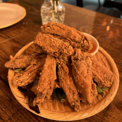 6 pcs chicken wings in Thai herbs. Deep fried serve with Thai sweet chili sauce.