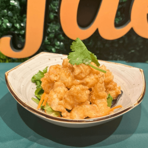 Battered fried shrimp mixed with Thai spicy mayo