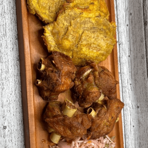 Made With Tasty Crispy Fried Plantain, Juicy Fried Pork, Avocado, House Pikliz and House special Mild Sauce