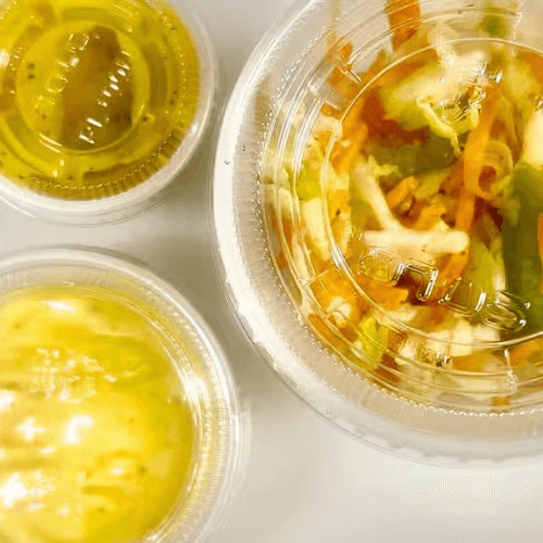 Haytian Pikliz made with fresh cabbage, crunchy green peppers, zesty onions, and colorful carrots all tossed in our house special seasoning.