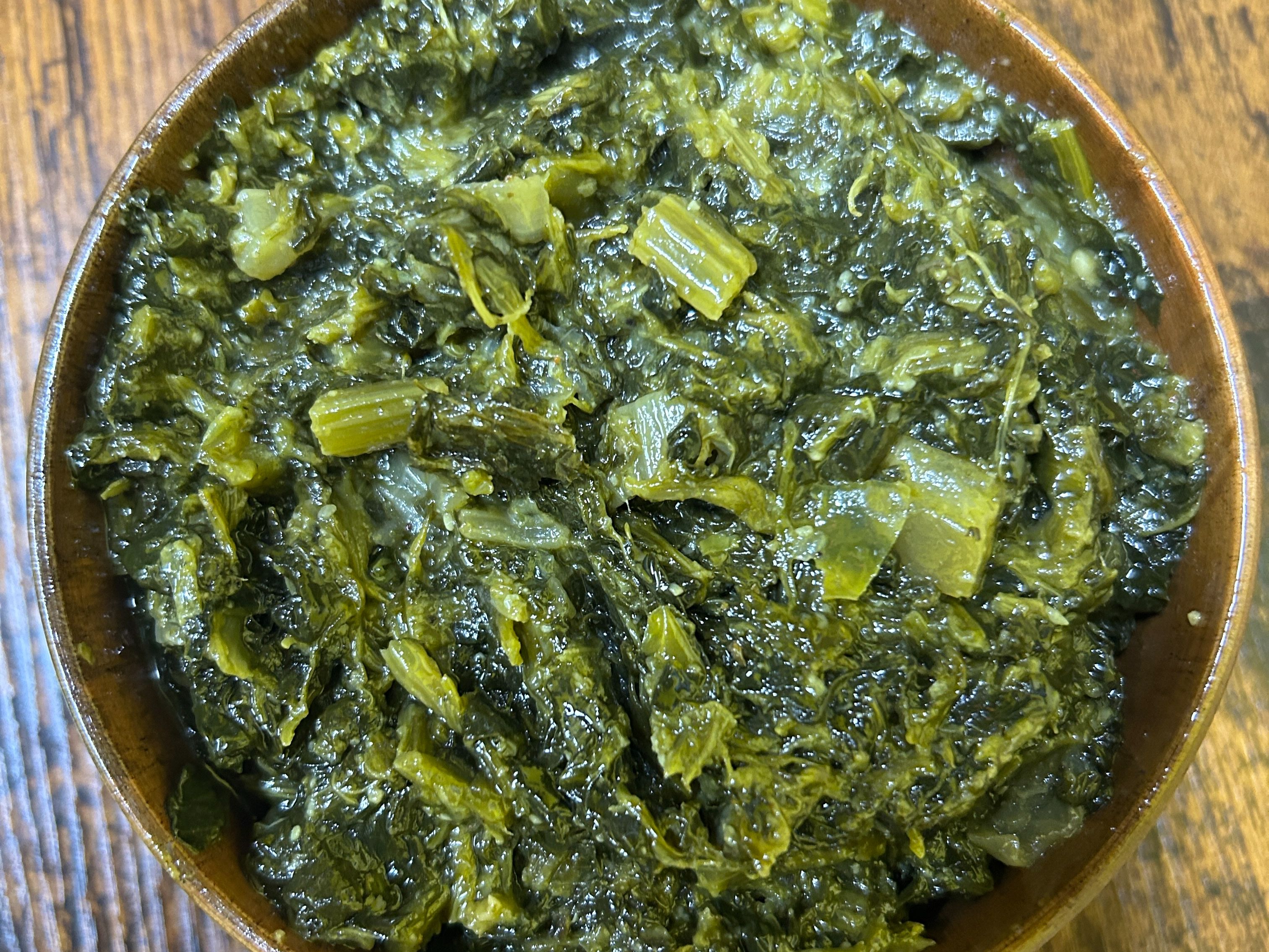very delicious spinach made with green peppers, parsley, and green onions, tasty no Maggi seasoning no MSG added