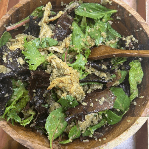 Spring Mix Salad with cooked & cooled lentil, cooked & cooled Quinoa and House made dressing! Add-ons: Baked Salmon / Baked Chicken Brest