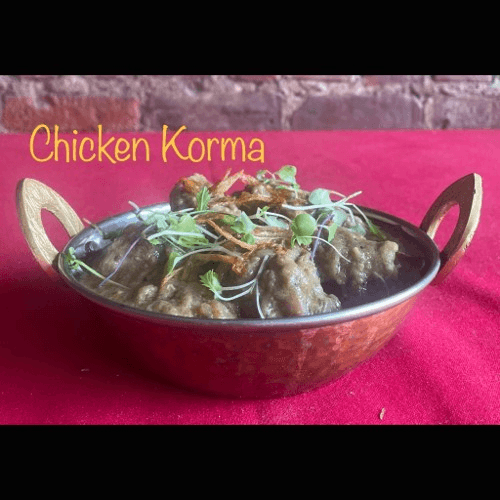 Bone-in chicken pieces cooked in korma sauce