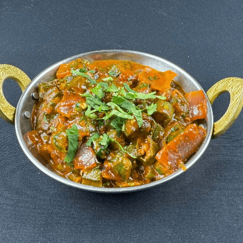 Vegan. Okra cooked in tangy and smoky sauce
