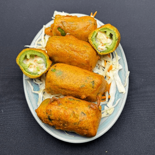 Vegetarian. Chili pepper stuffed with 3 cheese mix