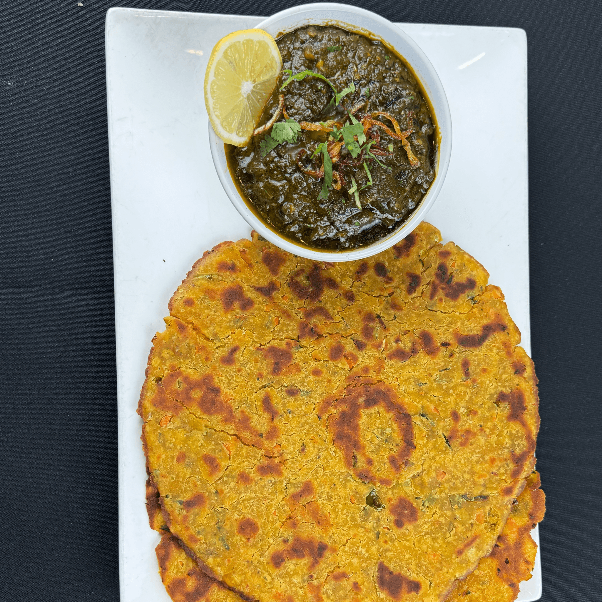 Vegan. Gluten-free. Organic baby kale, spinach, carrot, and other fresh vegetables. All dishes come with sambhar and coconut chutney