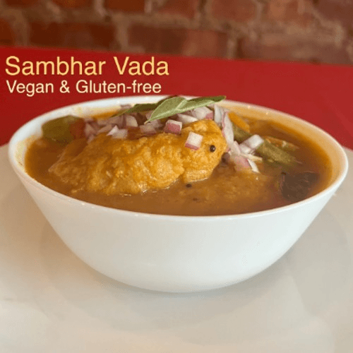 Vegan. Gluten-free. All dishes come with sambhar and coconut chutney