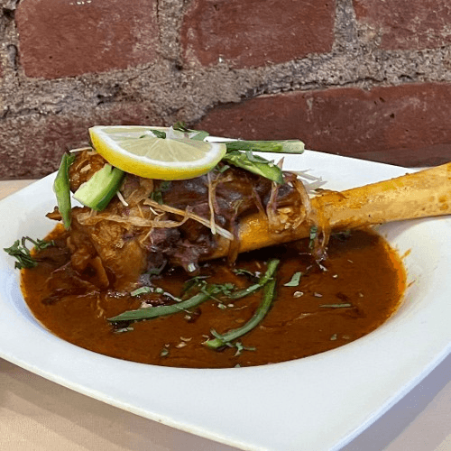 Goat on the bone seasoned with our traditional nehari masala. Contains gluten