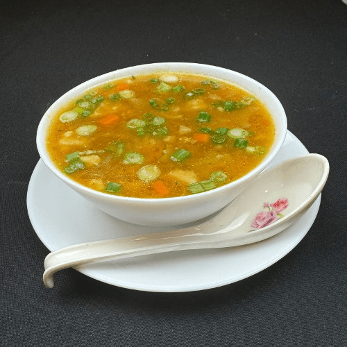 Boneless chicken cooked in tangy sauce with julienne cut onion and pepper and vegetable broth