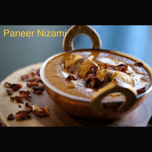 Homemade Cottage cheese filled with nut-based nizami filling. Dipped in aromatic creamy sauce