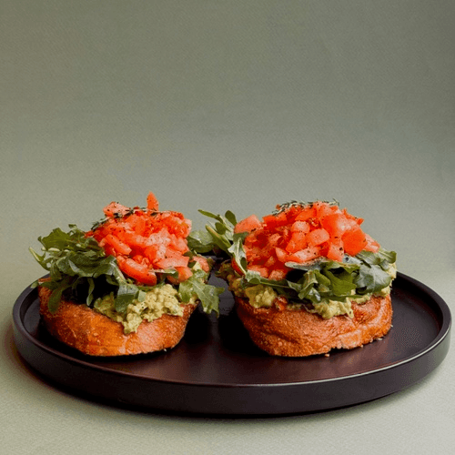 Smashed avocado, chopped tomato & arugula on Sourdough bread