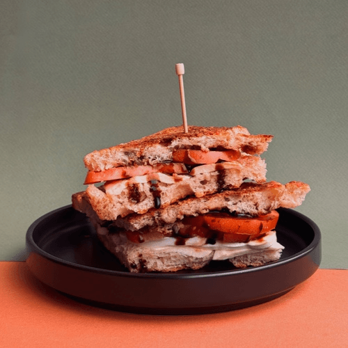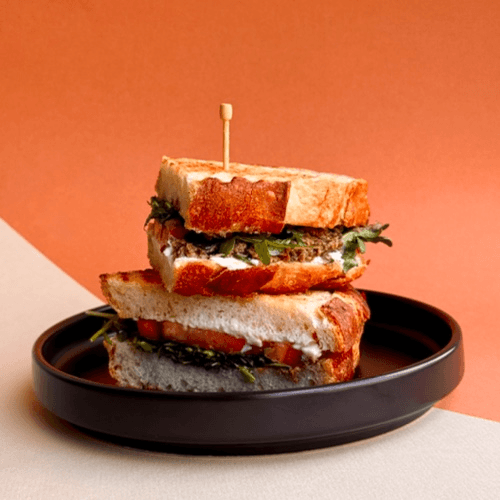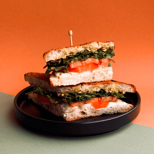 Mozzarella, sliced tomato, pesto & arugula served on grilled Sourdough bread