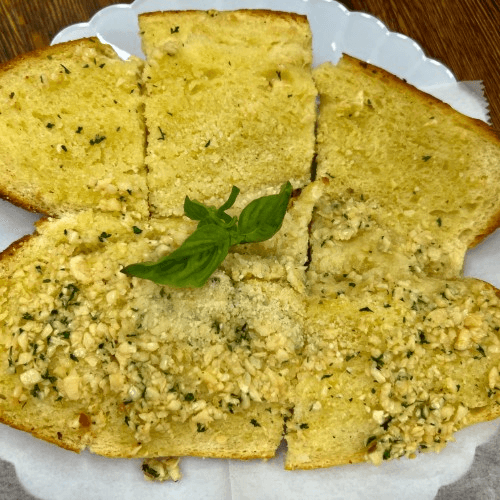 Fresh chopped garlic & EVOO over toasted semolina bread