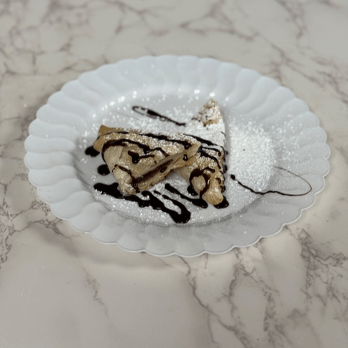 Breaded eggplant and mozzarella cheese wrapped in dough and baked. A satisfying vegetarian option.
