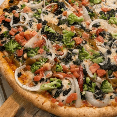 Mixed fresh vegetables with melted mozzarella, stuffed crust