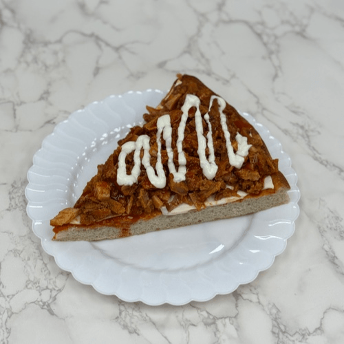 Chopped fried chicken, bacon, drizzled ranch dressing & mozzarella