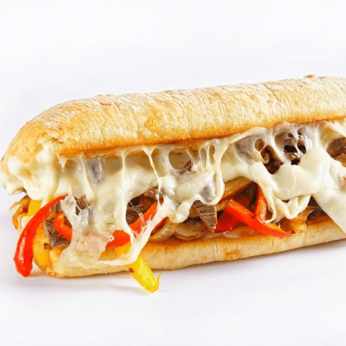 Thin-sliced beef steak with melted cheese, grilled to order.