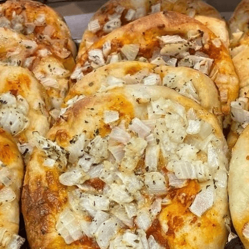 Onion lovers must! perfectly risen dough, seasoned with onions, topped with Romano cheese, and drizzled with EVOO