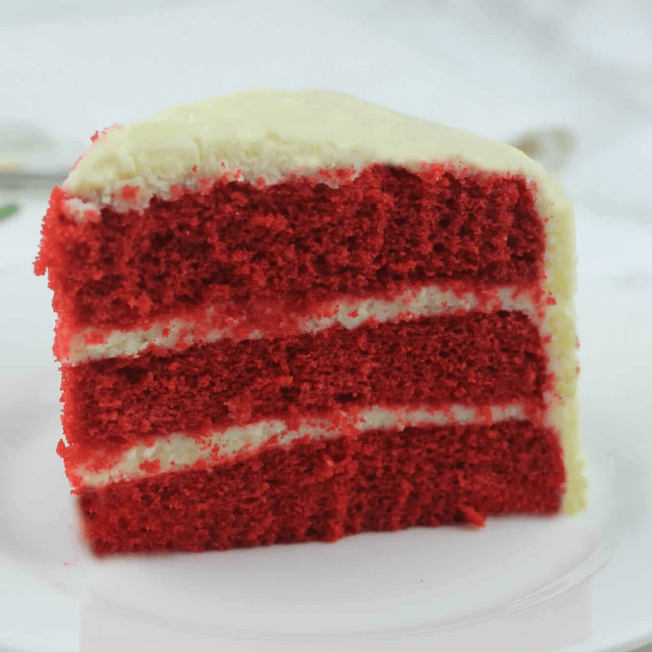 Red velvet cake a vibrantly colored cake that’s topped with cream cheese frosting moist and delicious 1