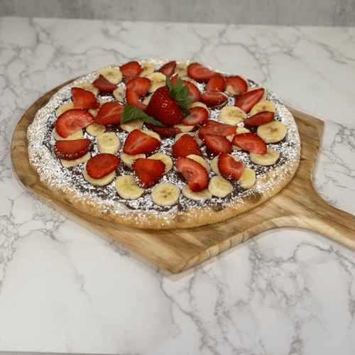 Topped with strawberries, bananas