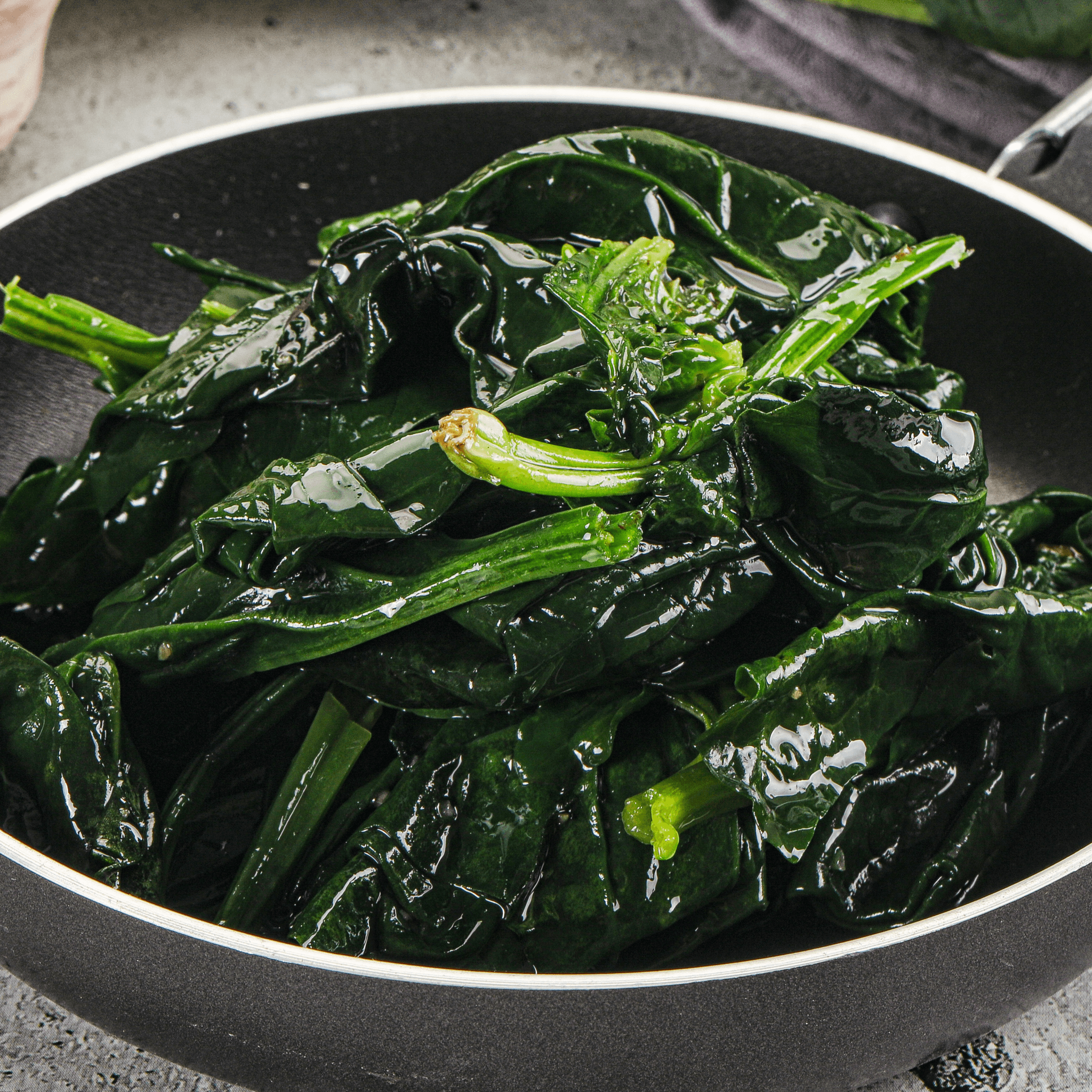 Sautéed spinach mixed with scrambled eggs for a hearty, healthy choice.