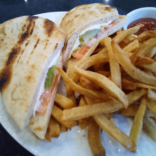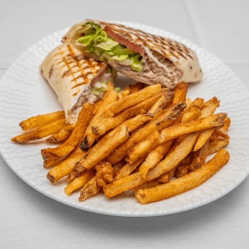 Tuna Salad, Mozzarella Cheese, Lettuce, Tomato, Onions.