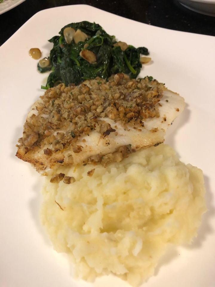 Perfectly flaky & buttery with Walnuts crust, served with Grilled Vegetables, Mashed Potatoes.