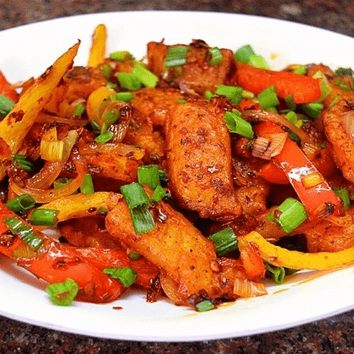 Spicy. Cottage cheese, bell pepper prepared with chilli garlic & soya sauce