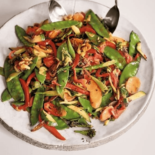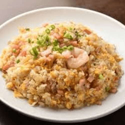 Spicy. Rice tossed with finely diced vegetables, fresh chilli & garlic