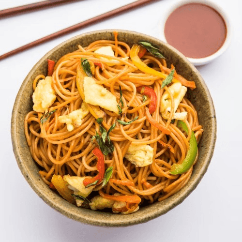 The provided combo image is for reference purposes only. Noodle, noodles tossed in Julienne of vegetables, spring onions. Gravy, spicy cottage cheese, bell pepper prepared with chilli garlic & soya sauce