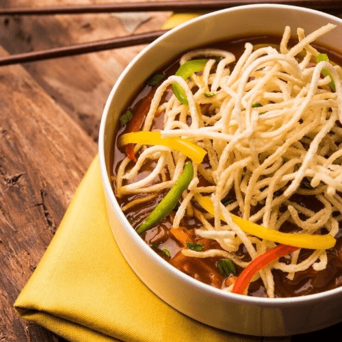 The provided combo image is for reference purposes only. Noodle, noodles tossed in julienne of vegetables, spring onions. Gravy, mix vegetable balls prepared in ginger, garlic, chilli & soya gravy
