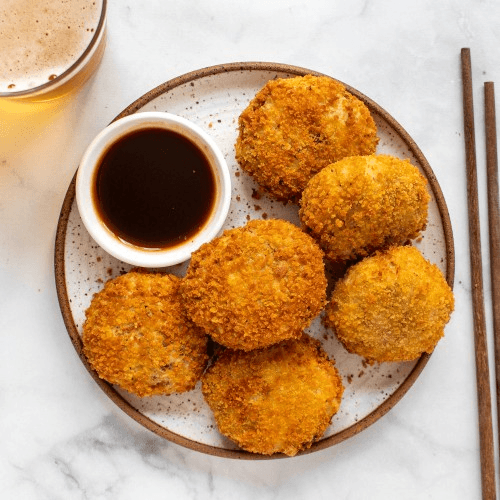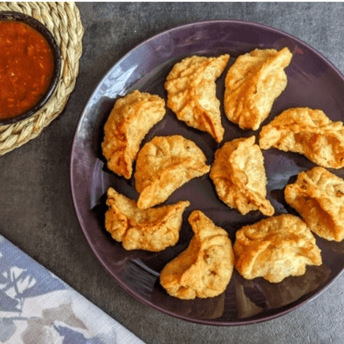 Crispy pan-fried dumplings filled with chicken, tossed in savory spices. Served with tangy sauce