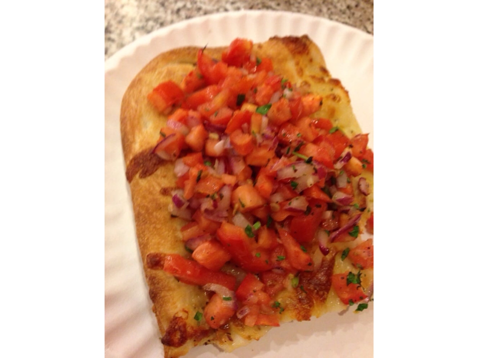 Chopped tomatoes, red onions, basil, arugula, mozzarella, olive oil