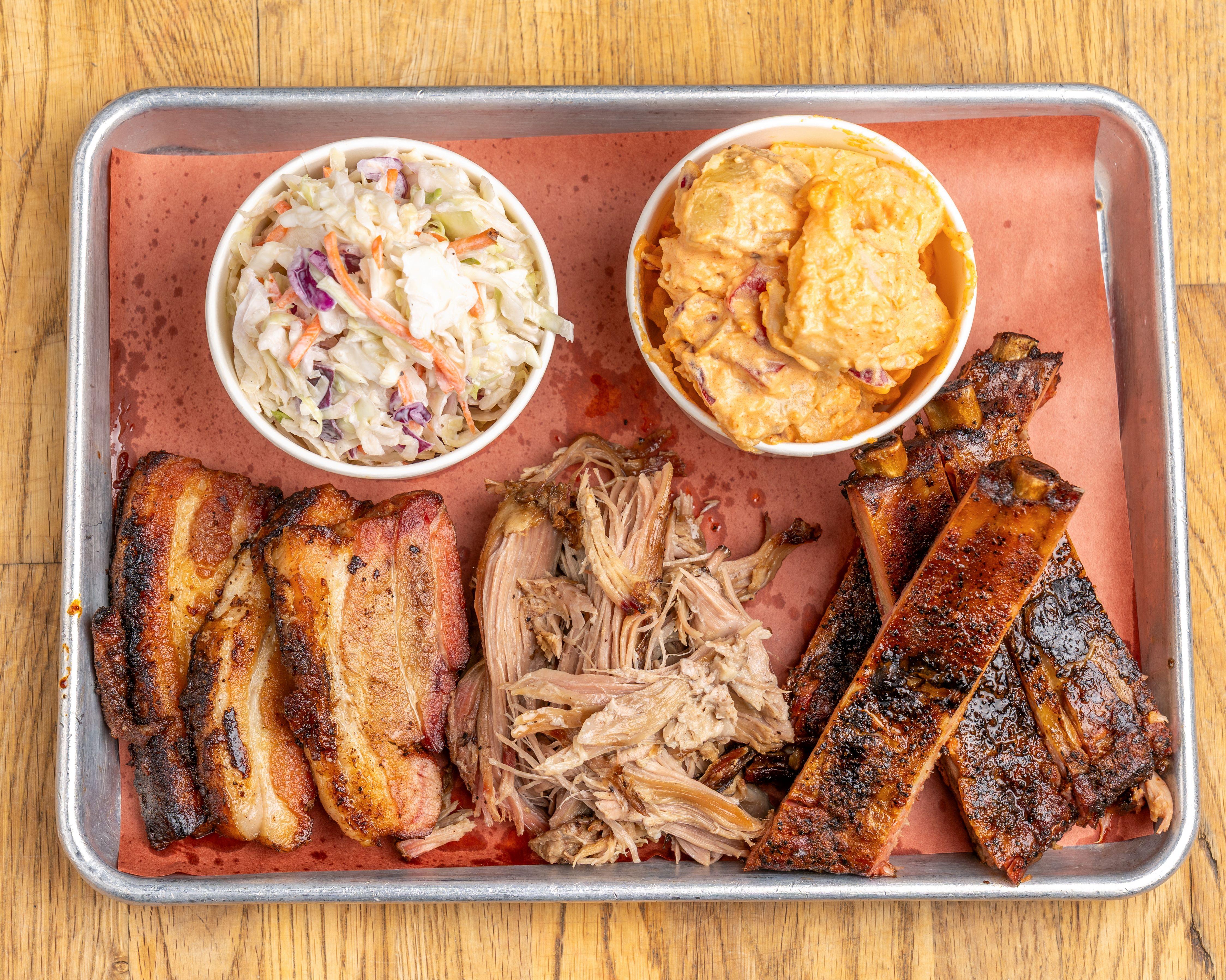 pork belly, pulled pork, pork ribs sides: cole slaw, potato salad (no substitutions)