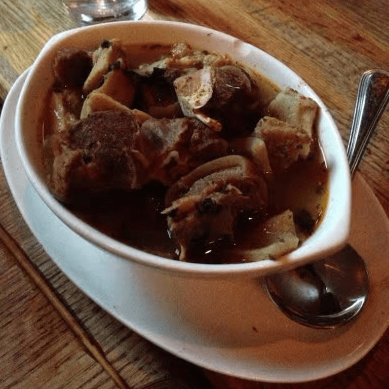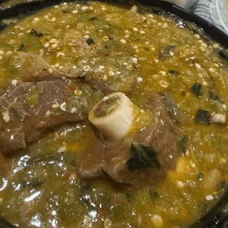 Spicy goat and tripe in a thin broth sou, made with fresh herbs and Nigerian spices