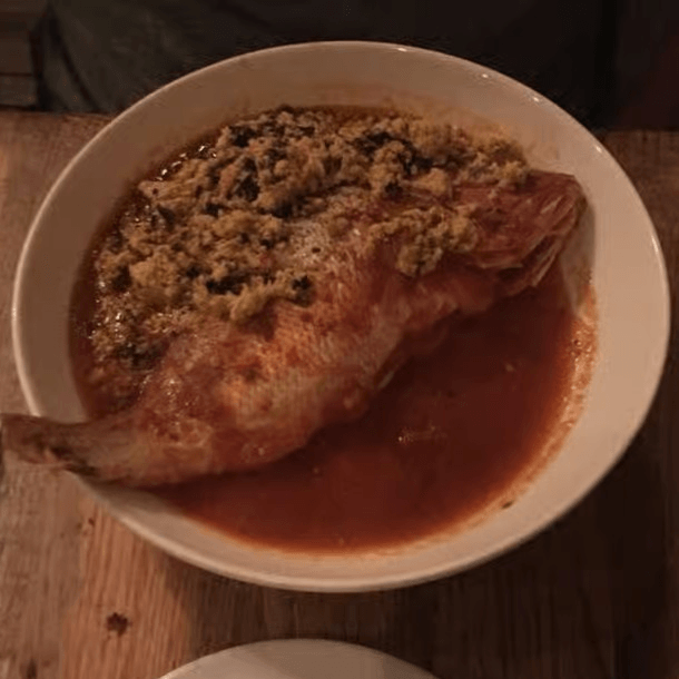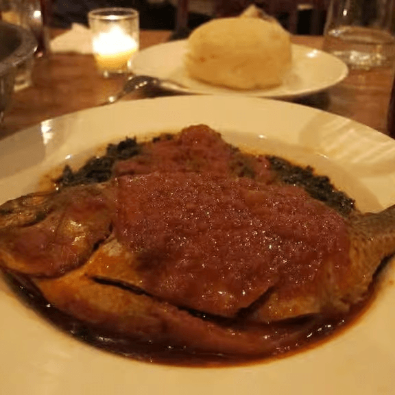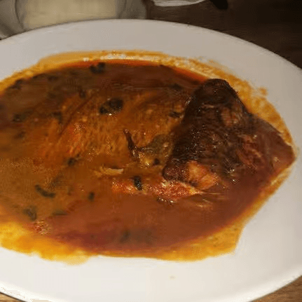 Spicy whole tilapia thin broth soup, made with fresh herbs and Nigerian spices