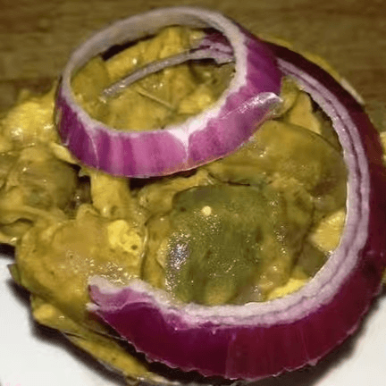 Finely diced okra cooked with locust bean