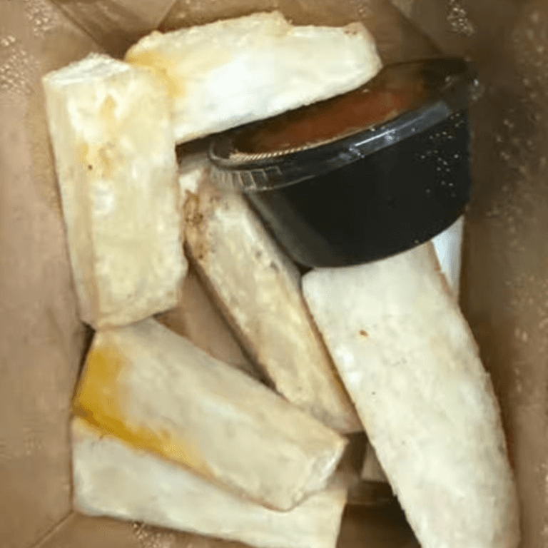 Yam fries with tomato and onion dipping sauce