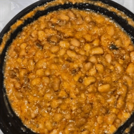 Honey beans with onion sauce. Served with boiled yam