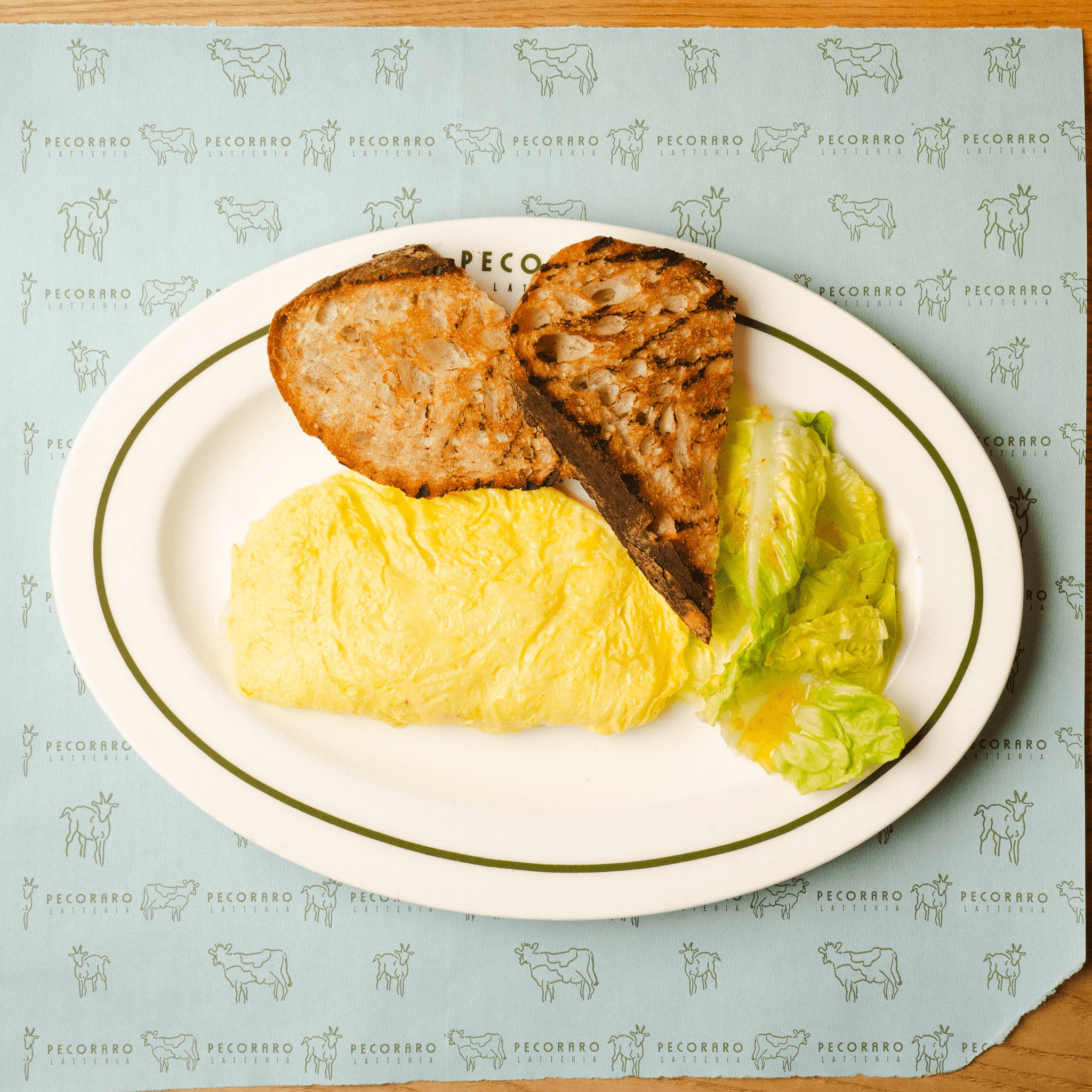 creamy center omelette, fontina cheese, lemon greens, sourdough toast
