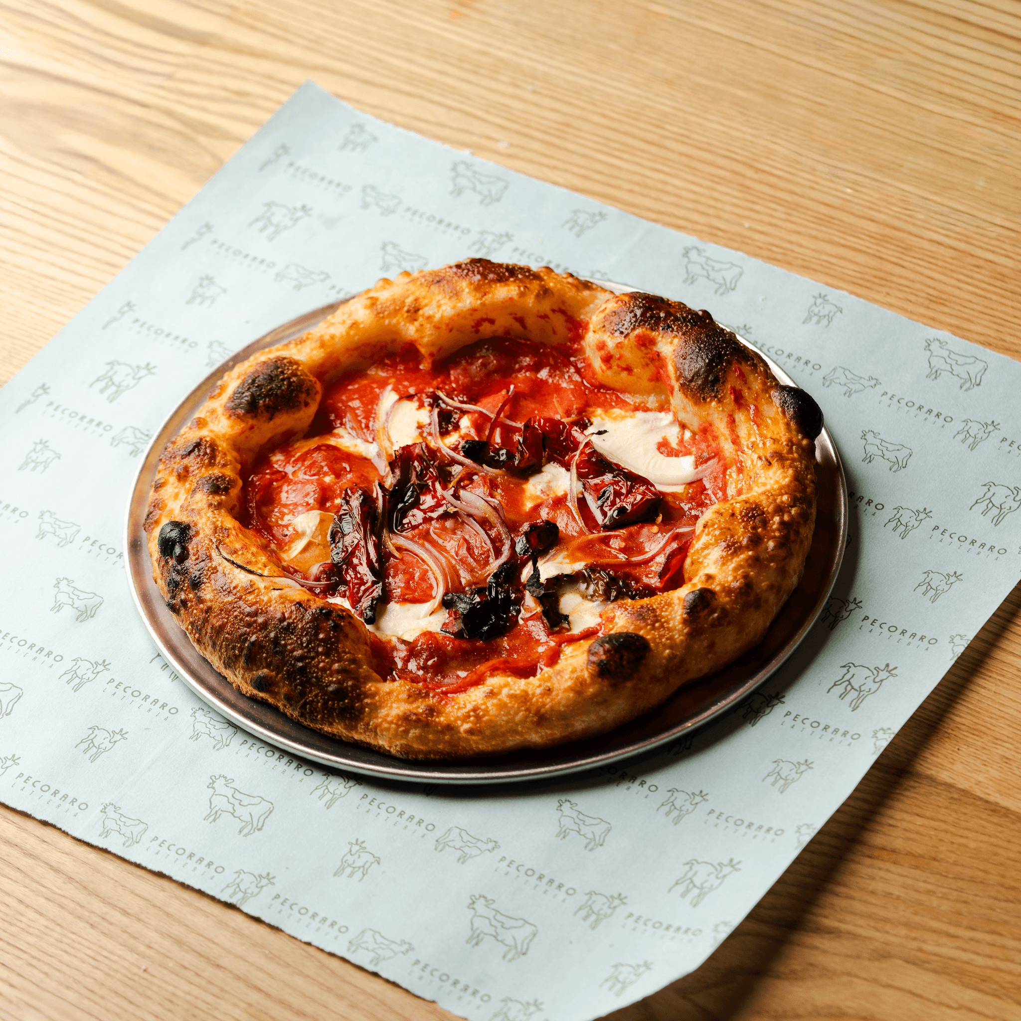 Tomato passata, scamorza, spicy sporessata, n'duja, nardello pepper, onion