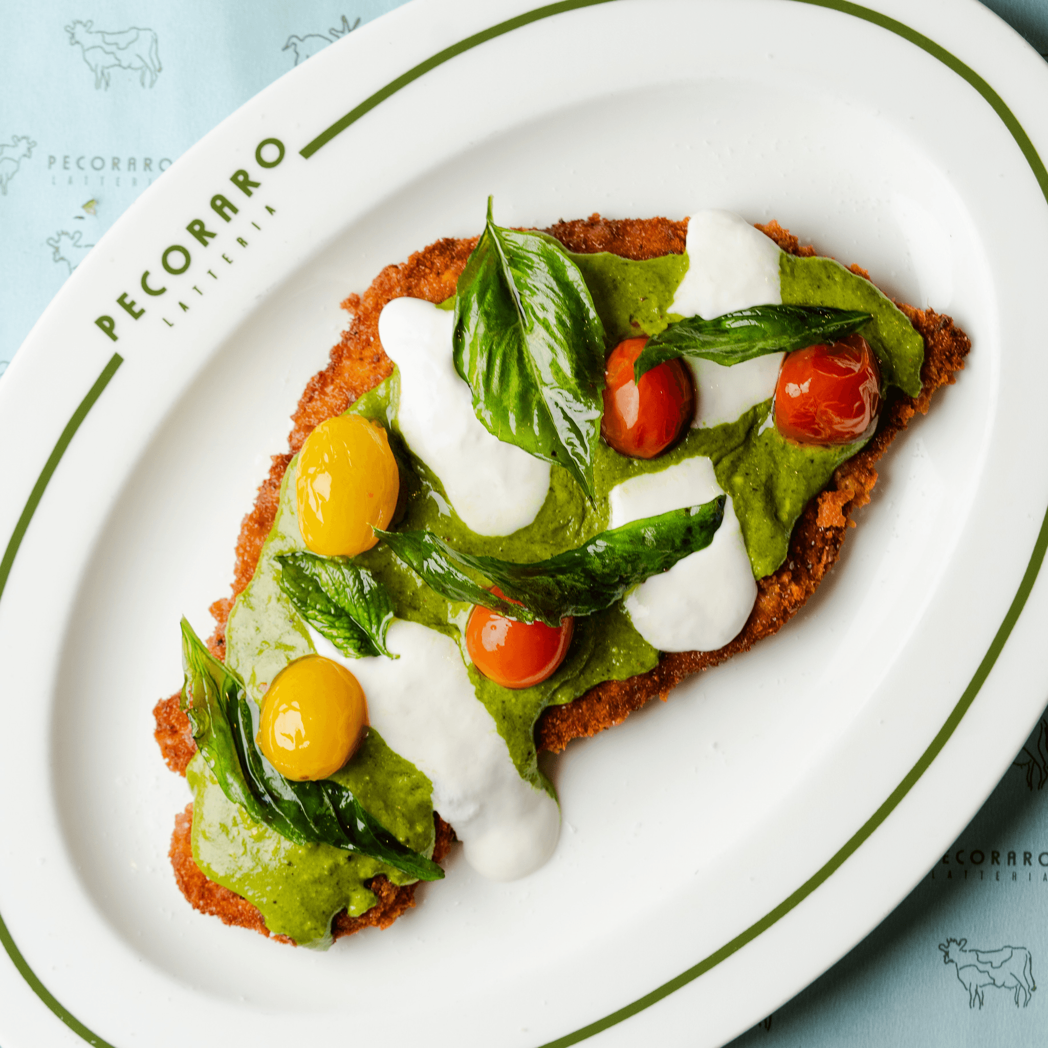 basil pesto genovese, Pecoraro burrata, arugula