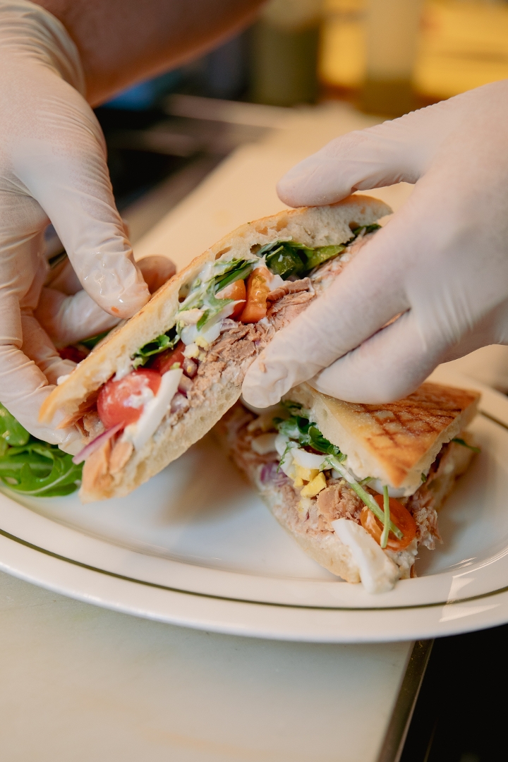 oli cured tuna, garlic aioli, hardboiled egg, confit tomato, red onion, arugula