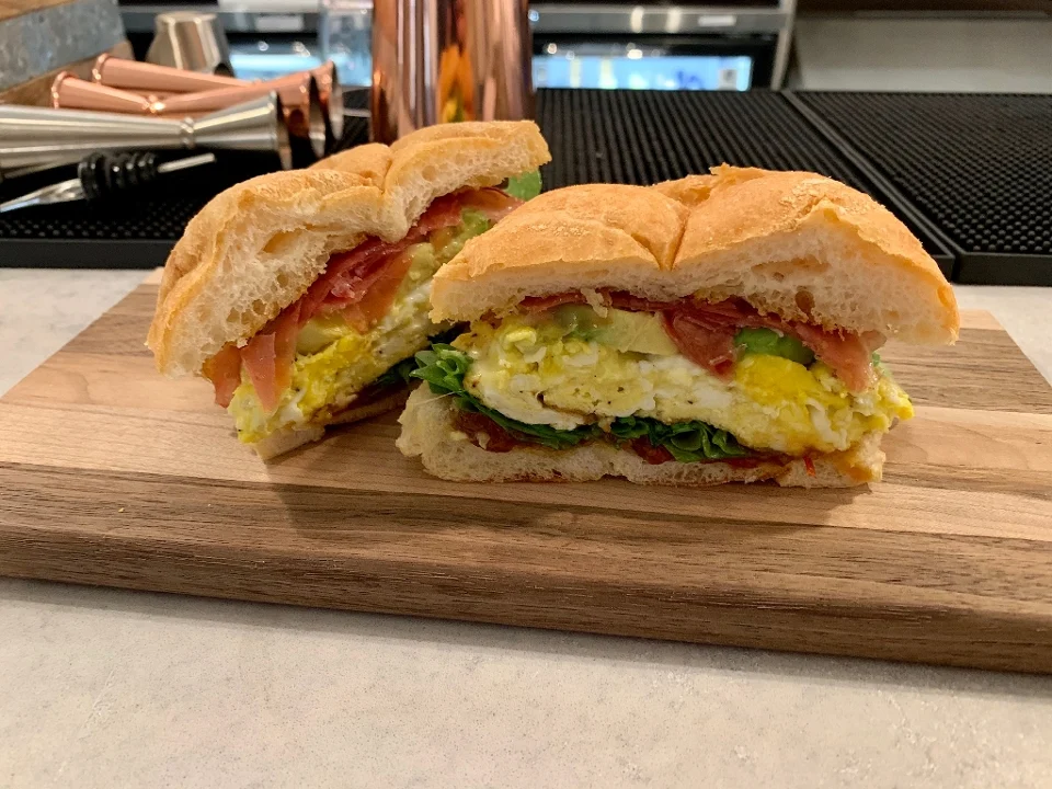 Scrambled eggs with asiago cheese, arugula and our house made tomato jam. On your choice of a Kaiser Roll, Bagel or Bialy.